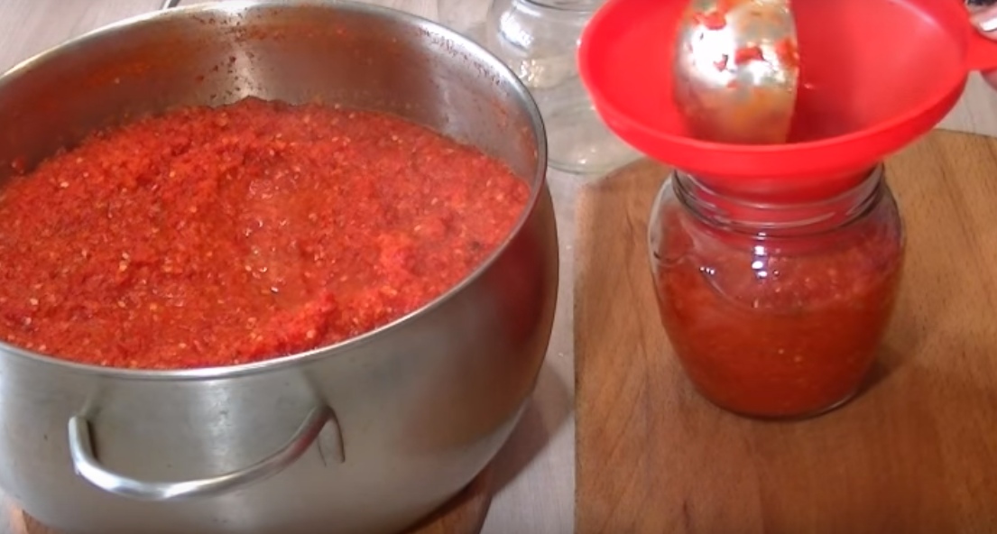 Острая аджика из перца с томатной пастой — без варки на зиму