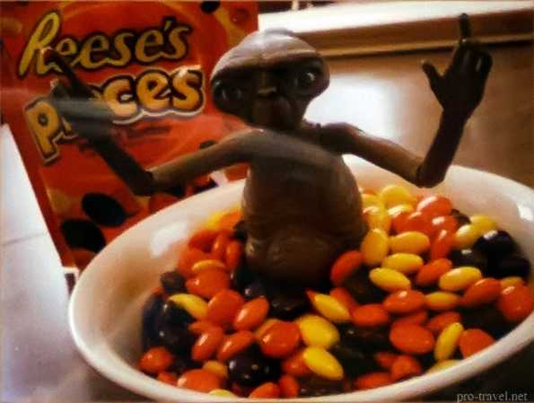 Но владельцы «Мars», братья Джон и Форрест, отказались от сотрудничества. В итоге контракт был подписан с фабрикой «Hershey’s«, и в фильме использовался ее новый продукт — «Reese’s Pieces». Поначалу эти конфеты продавались плохо, но стартовавшая вместе с выходом картины рекламная компания «Любимые конфеты Инопланетянина» в корне изменило ситуацию — в течение двух недель продажи утроились и продолжали расти следующие несколько месяцев.