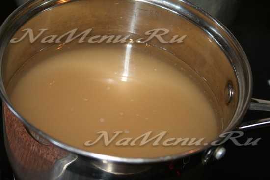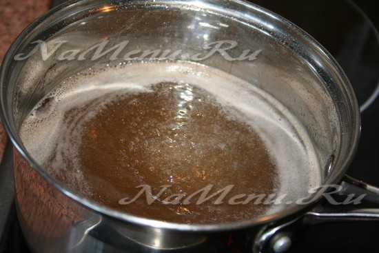 - Из воды и полной нормы сахара варят сироп, прогревая смесь до полного растворения крупинок.