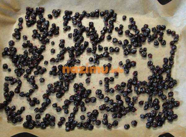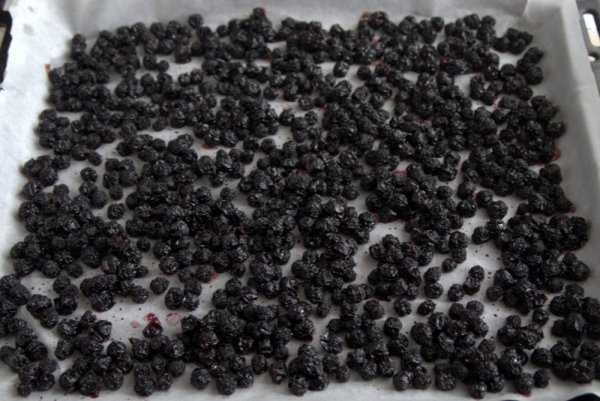Спустя десять часов, ягоды выкладываем на подготовленный лист и оставляем их сушиться при комнатной температуре. Также их можно высушить в разогретой до пятидесяти градусов духовке, таким образом