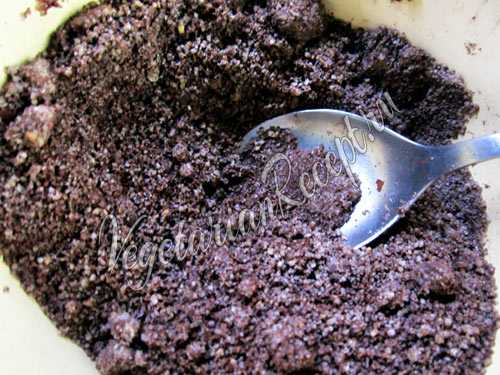 1. Бисквит раскрошить руками или блендером до максимально однородной массы, мелких крошек. Можно потереть на терке.