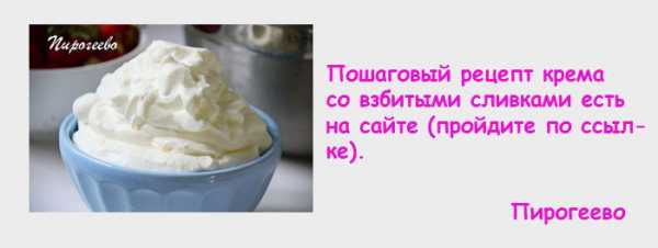 - Крем:ванильный заварной, со взбитыми сливками или на основе творожного сыра.