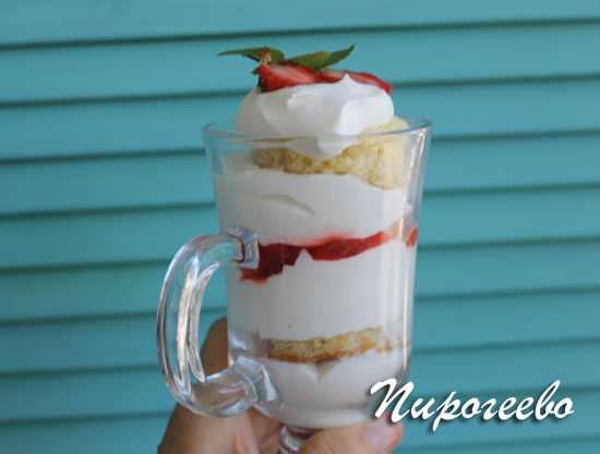 В моем десерте бисквит идет после свежих ягод и сливок. Затем все слои повторяются.