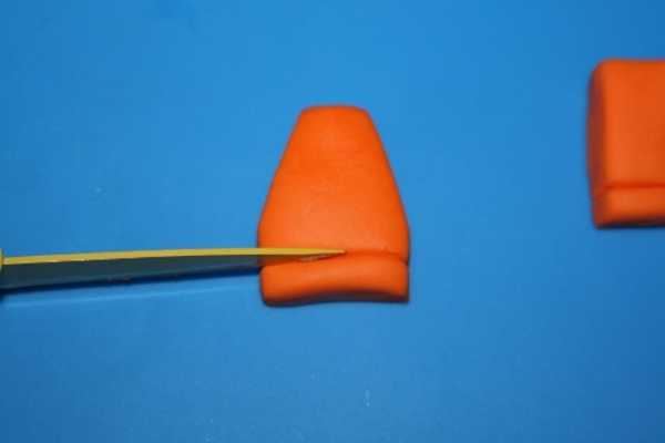 - Проводим ножом полосочку снизу, такую же как на штанишках.