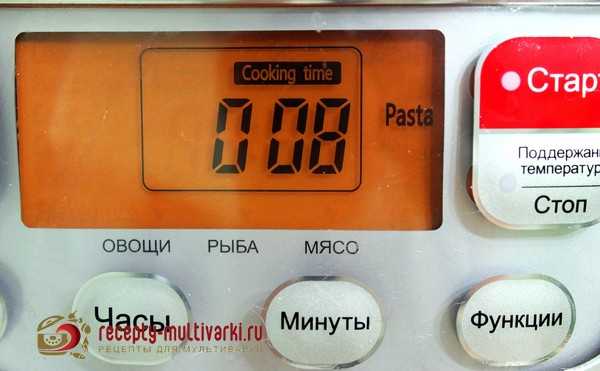 Включаем режим «Паста» на 5-8 минут. Закрываем крышку.