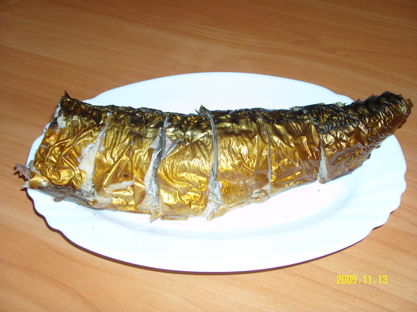 Только после полного остывания снимаем фольгу и охлаждаем в холодильнике. Охлажденную рыбку можно нарезать порционными кусочками и подавать к столу.