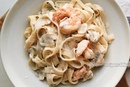 Паста с ветчиной и горохом в сливочно-чесночном соусе с пармезаном