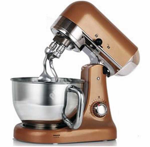Техника с шестью скоростями пользуется особой популярностью. В комплекте с этим устройством покупатель получает венчик, специальную насадку для перемешивания, пару толкателей, крюк для теста и мясорубку.