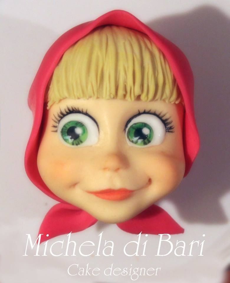 - Из белой мастики сделайте два небольших прямоугольника и вставьте их в рот как передние зубы Маши.