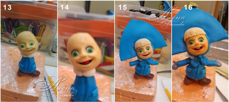 Я по вашем видео слепила Машу, начала рисовать глазки, а получились чёрные глазищя, гелевые красители потекли(