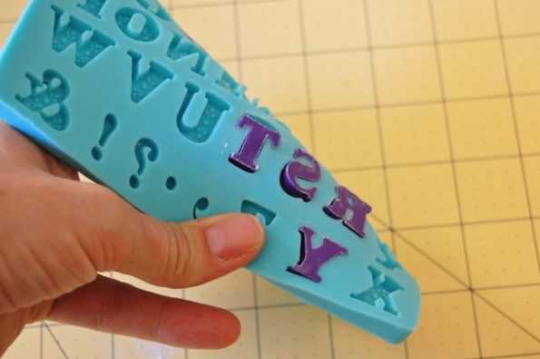 Сразу же согните молд, чтобы буквы высыпались из него. С некоторыми придется повозиться прежде, чем они будут извлечены из формы. Если некоторые буквы деформируются при извлечении, поместите молд в морозилку еще на 5 минут и попытайтесь снова.