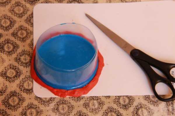 3. Подберите подходящую по размеру опалубку. Мы взяли одноразовый стакан. Отрезаем верх. Ставим его на мастер-модель. Дно тщательным образом облепливаем восковым пластилином (чтобы не было подтеков силикона).