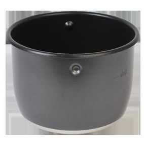 - Алюминиевая чаша с покрытием из тефлона. Объем 6 л. Готовой пищи будет 4 л. Делений нет, есть метка наибольшего наполнения.