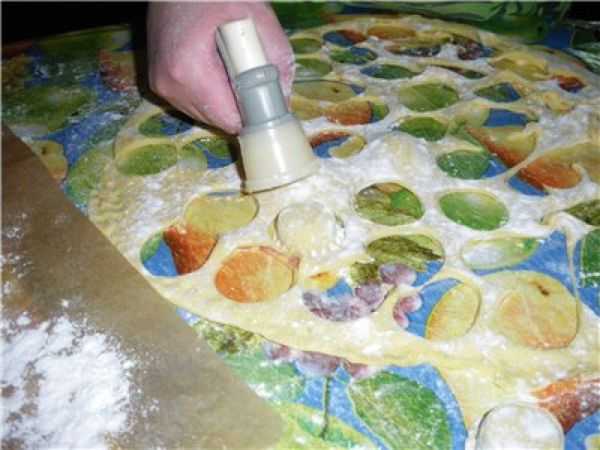Итак, сам пистолет представляет собой гениальный штамп, оборудованный поршеньком, который при необходимости выталкивает слепленный пельмень из рабочей поверхности и пружиной, которая возвращает поршень в исходное положение. Пистолеты выпускались несколькими заводами и имели различия в дизайне. Данный пистолет имеет ровную, округлую кромку с двумя краями: внутренняя кромка сцепляет слои теста, а внешняя отрезает, при этом формируется прикольный и необычный по виду пельмешек, но об этом позже. Давайте начнём всё по прядку и раскатаем пласт теста. Как и во всех штампах, нам необходимо два слоя теста — верх и низ, для этого разделяем пласт на две части фактически или визуально, так как я обычно делаю. Так же нужно сделать наметки на тесте, куда будем накладывать начинку, что бы не промахнутся и слепить аккуратные пельмени.