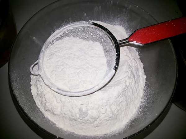 - В еще пышную массу добавляем муку. Если у вас есть сито, то лучше муку просеять, но если сита нет, то просто встряхните в чистой сухой миске необходимое количество муки. Так она обогатится кислородом.