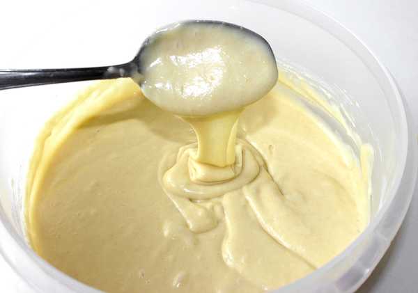 - Перемешиваем всю массу, получается пористое тесто консистенции хорошей сметаны.