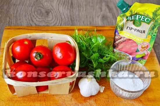 На десять средних помидор берется одна большая ложка соли, веточка укропа, петрушки, кинзы. Далее добавляют 4 зубчика чеснока, столовую ложку сахара. Можно также порезать мелко лук, сельдерей. Вместо уксуса выжать свежий лимон.
