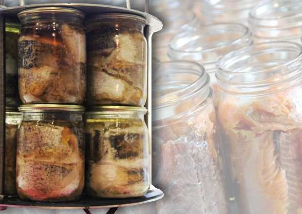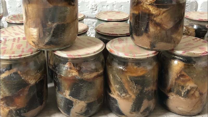 Проще, надёжнее и выгоднее раскладывать консервированную рыбу по небольшим баночкам, содержимое которых можно съесть сразу после открытия. При консервации банки наполняют до плечиков, иначе при нагреве рыбная смесь расширяется, и заливка вытекает.