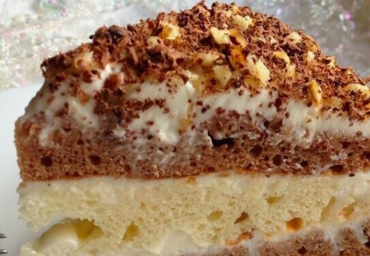 Десерт состоит из самых простых и доступных ингредиентов, среди которых кефир, пшеничная мука, сахар, сметана, яйца, какао-порошок и грецкие орехи.
