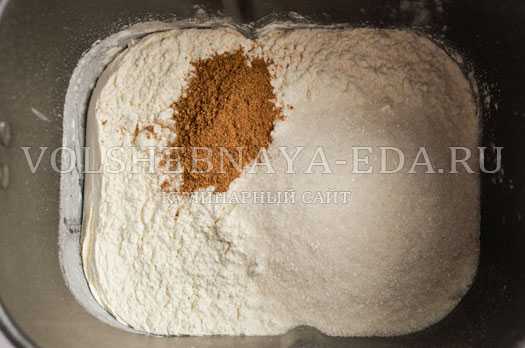 Пока подходит опара, в чашу хлебопечи или комбайна всыпьте муку, оставшийся сахар, соль и специи.