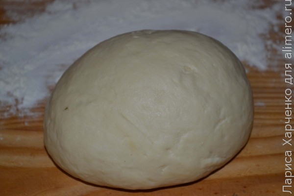 Постепенно ввести муку. Хорошо вымесить тесто. Тесто должно быть мягким и эластичным, после тщательного вымешивания к рукам не должно липнуть. Ставим миску с тестом в теплое место на расстойку.