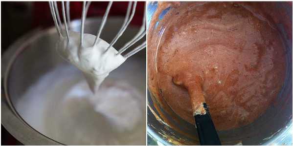 - Получившуюся меренгу вводим в шоколадную массу и перемешиваем аккуратными складывающими движениями снизу вверх до однородного состояния.