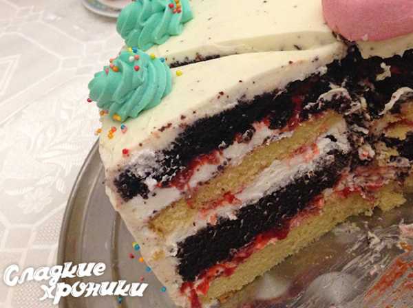 Многие из вас уже знакомы с этим рецептом. Этот бисквит самый старенький и повидавший виды шоколадный бисквитик. Я часто вам его советую. Сама его в очередной раз пекла буквально 2 дня назад. Он настолько насыщенный сам по себе, что не требует, в отличие от ванильного, множества «добавочных материалов». Вот, для последнего торта я просто пропитала его сиропом и прослоила кремом с маскарпоне. Получилось по-простому гениально.