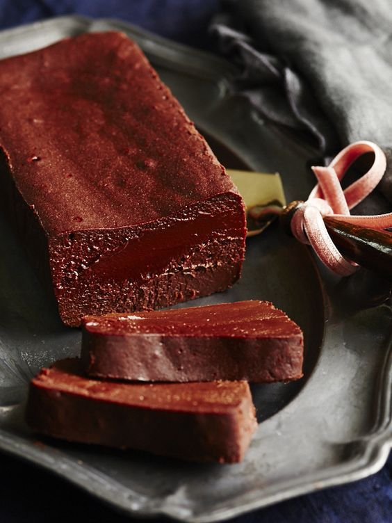 Насыщенный, темный, декадентский — магия шоколада Valrhona придает террину непреходящую глубину вкуса. Готовить террин нужно на день вперед.