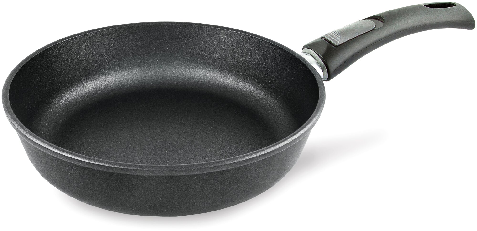 Эта сковорода изготовлена из прочного алюминиевого корпуса, который быстро и равномерно нагревается. Это касается и индукционных варочных панелей, благодаря сверхтяжелому основанию. Ручка из нержавеющей стали соединяется с сковородой V-образной формой, как и у Radical Pan, благодаря чему она остается прохладной. Его эргономичная форма хорошо лежит в руке. Эти сковороды тоже хороши в духовке, при температуре до 450 градусов по Фаренгейту.