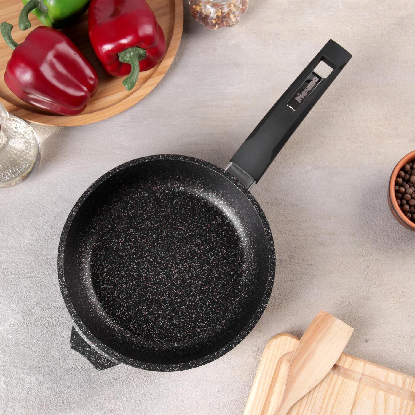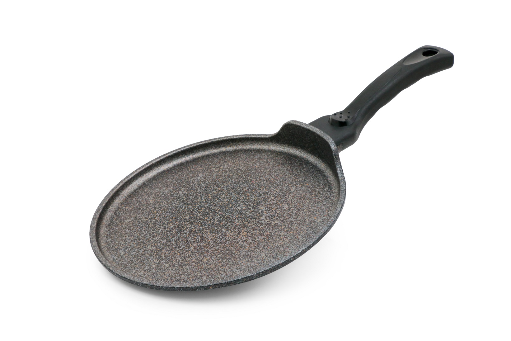 Антипригарное покрытие с каменной крошкой считается одним из самых прочных и экологичных. Зато оно заметно увеличивает стоимость сковороды.