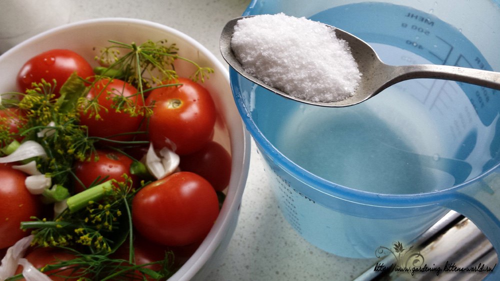Помидоры стоит подобрать массой до 90 грамм, круглые или овальные, с толстой шкуркой. Соли потребуется 300 грамм, сахара столько же.