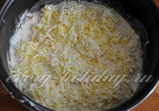 Сверху натереть на крупной терке хорошо охлажденное сливочное масло (можно просто порезать кусочками).