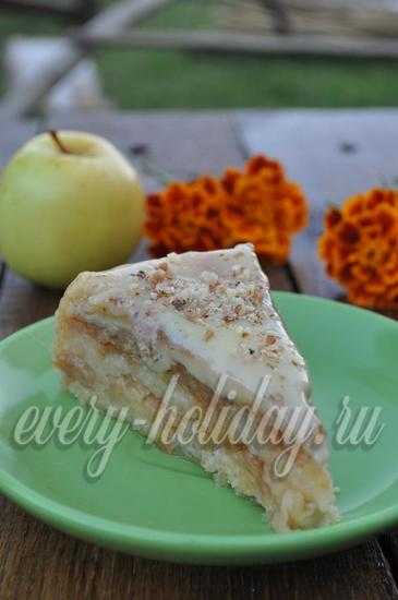 В итоге, у вас должно получиться 4 слоя теста и 3 слоя яблочной начинки.