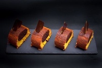 6. Достаньте корень из холодильника. Срезав кончик ножа 0,5 см со всех сторон (чтобы утопить в муссе, а не класть сверху). И выложу сверху.