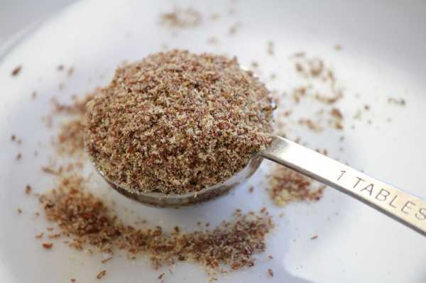 - Перемелите или раздавите в ступке 3 столовых ложки семян льна.