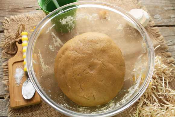 Выложите содержимое миски на рабочую поверхность. Замесите тесто. Совет. Если тесто не будет замешиваться, иными словами не будет «склеиваться», добавьте ещё одно яйцо. Готовое тесто верните обратно в миску, накройте и отправьте на полчаса в холодильник.
