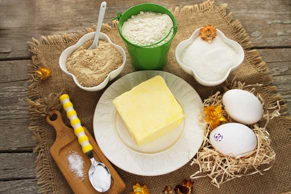 100 гр. сливочного масла, 1 ст.л. с верхом 20% сметаны, 1 стакан сахара (можно обойтись и половиной, — печенье будет не менее сладким, но более полезным), 1 яйцо, 1 стакан овсяной муки (толокно), 1 стакан пшеничной обойной цельнозерновой (вместо обойной муки можно взять обычную пшеничную муку), щепотка соли, 0.5 ч.л. соды.