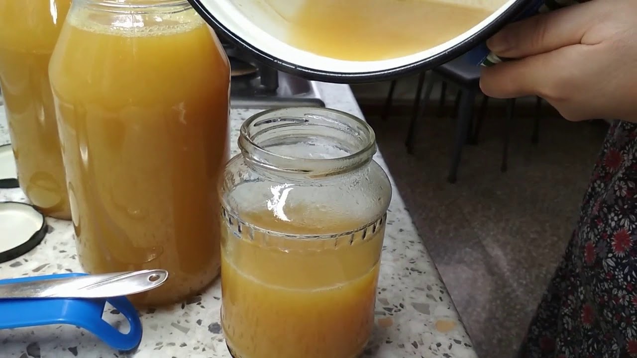 - Для начала подготовьте банки: вымойте их и стерилизуйте каждую, подержав над горячим паром около 15 минут. Теперь выжимаем сок с помощью соковыжималки или пресса, и выливаем его в кастрюлю.