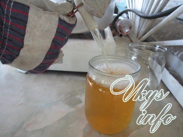 Полученную жидкость с сахаром нужно поставить на огонь, нагреть, пока не появятся первые пузырьки. Залить ее в стерилизованные банки, бутылки, закатать. Хранить продукт можно до 2 лет.