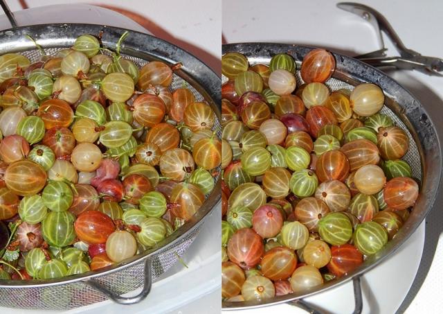 - Крыжовник перебираем, чистим, промываем под проточной водой и откидываем на дуршлаг.