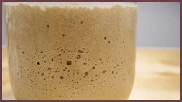 Натуральные дрожжи питаются простыми сахарами найденными в муке. Когда дрожжи питаются сахаром, выделяется углекислый газ. Поэтому мы видим пузырьки воздуха в закваске. Этот газ позволяет тесту подниматься.