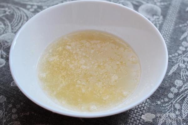 1Желатин залить 2-3 столовыми ложками воды, дать набухнуть.
