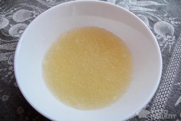 Если вы будете затем класть в желе фрукты, добавьте желатина немного больше, чем указано в инструкции, так как фрукты могут пустить сок.В моем случае желатин был быстрорастворимый. Поэтому я добавила в воду сахар, ванильный сахар. Довела воду до кипения. Сняла с огня. Добавила желатин в горячую воду и размешала, чтобы растворились все комочки желатина. Остудила до слегка теплого состояния.