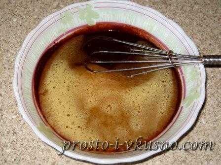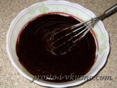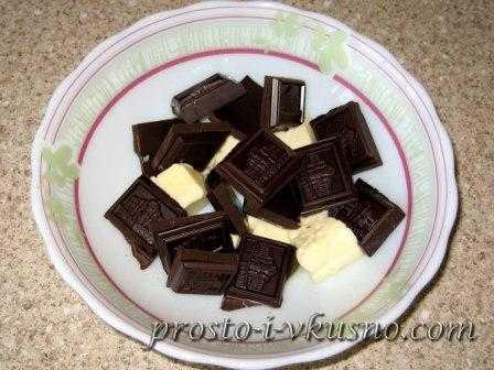 - Как и в предыдущим рецепте, растопить масло с кусочками темного шоколада. Способы, которыми можно воспользоваться, были описаны выше.