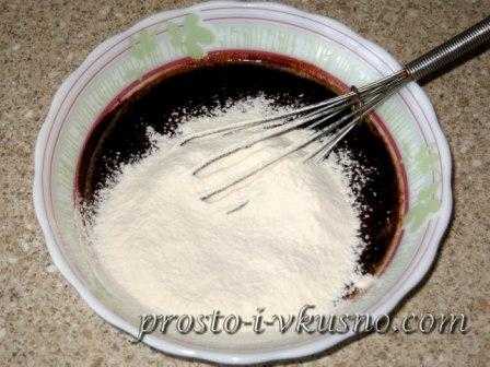 Перемешиваем и добавляем просеянную муку.