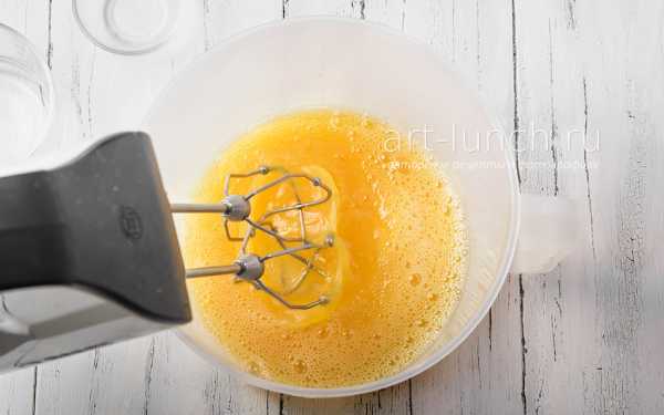 - Взять яйца и взбить их с сахаром до белой пены. Лучше всего использовать при этом миксер, но если он отсутствует, можно воспользоваться простым венчиком.