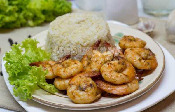 ![]() Вот так выглядят готовые креветки в медово-соевом соусе с чесноком, подавать их лучше всего с обычным отварным рисом. |