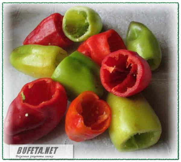 - Для этого нужно вырезать из плодов сердцевину с семечками. А затем заполнить каждый перчик мелко нашинкованной белокочанной капустой.