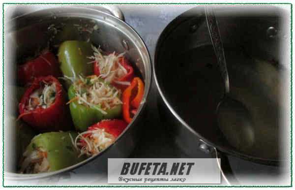 В нашем случае. Все наоборот: пока перец будет сквашиваться, начинка потеряет часть влаги и осядет, поэтому «набиваем» перцы начинкой и хорошо уплотняем.