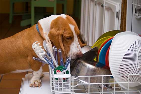 Посуду и игрушки животных. Если в доме есть собаки, коты, наверняка уход за их посудой не является вашим любимым занятием. Сложите все на верхнюю полку ПММ и запустите антибактериальный режим.
